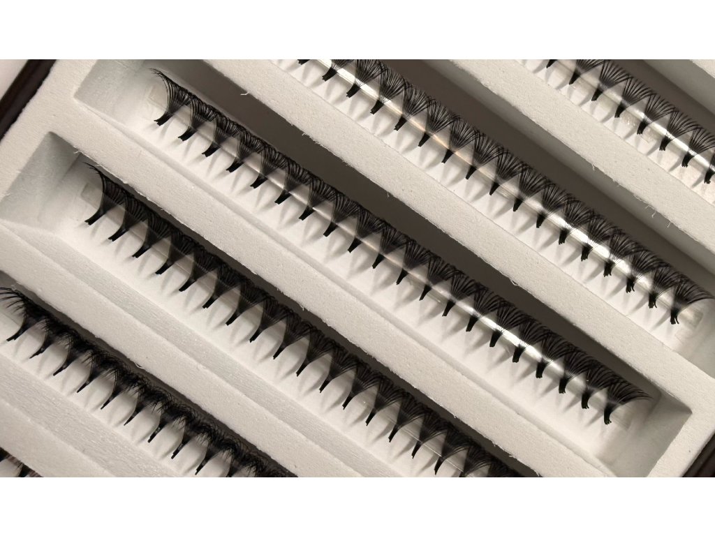 Extra velké balení hotových vějířků prémiové kvality s velmi tenkým a pevným spojem, který perfektně přilne na přírodní řasu a vytvoří neviditelné spojení. Ultra lehké. Ručně dělané.